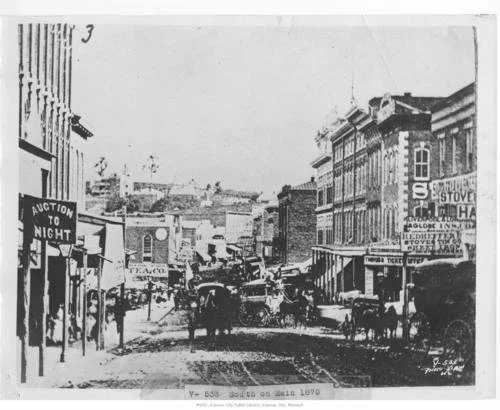 Kansas City’s Main Street In the early 1870s would have been familiar to Hickok, by then famous as “Wild Bill” after his years as a lawman in Abilene and Hays, Kansas.