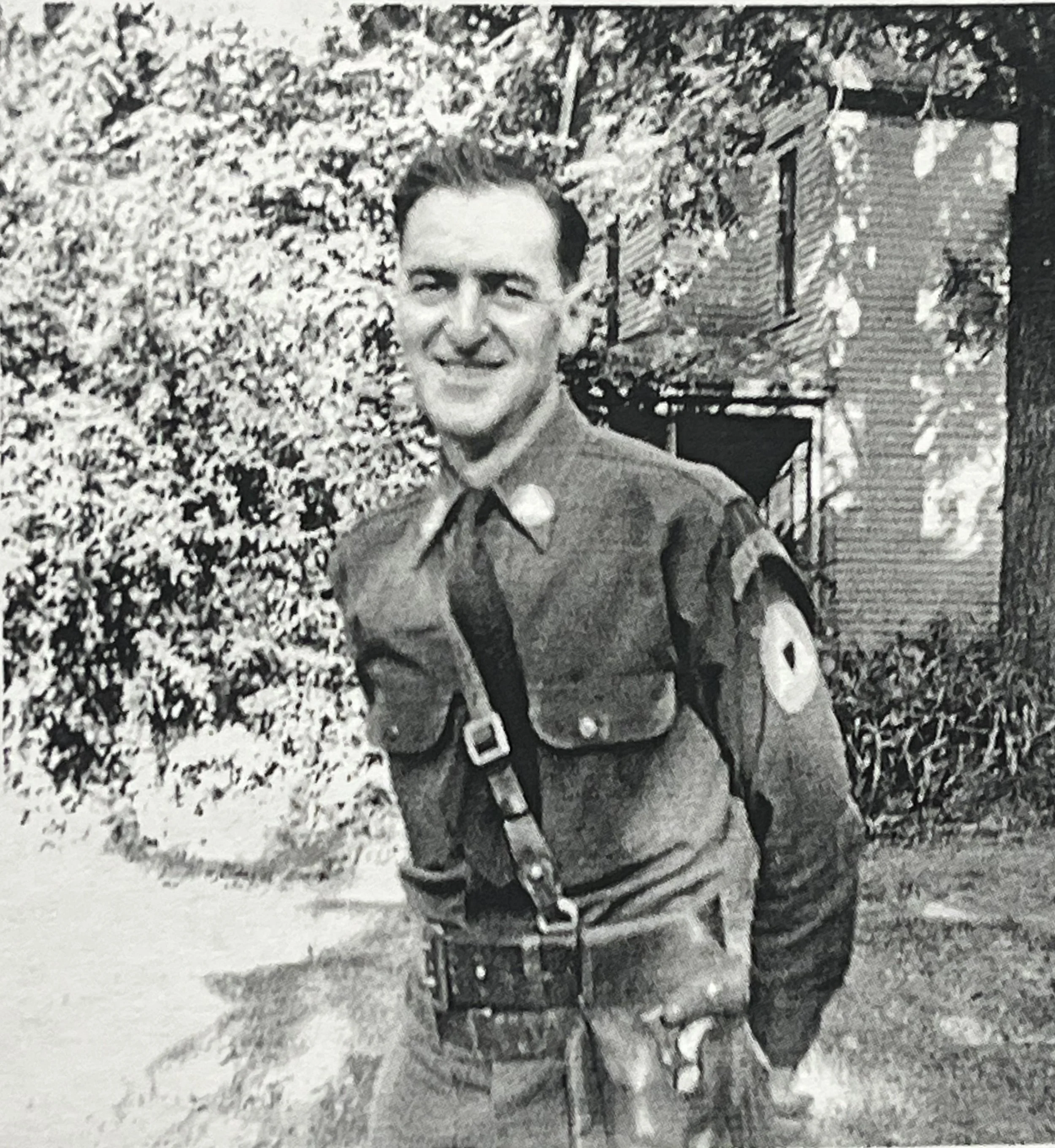A young Max Gould appears in uniform for civilian defense work as an auxiliary police officer for the City of Independence. He later joined the regular Independence Police in 1949. Image courtesy of John Pritchard.