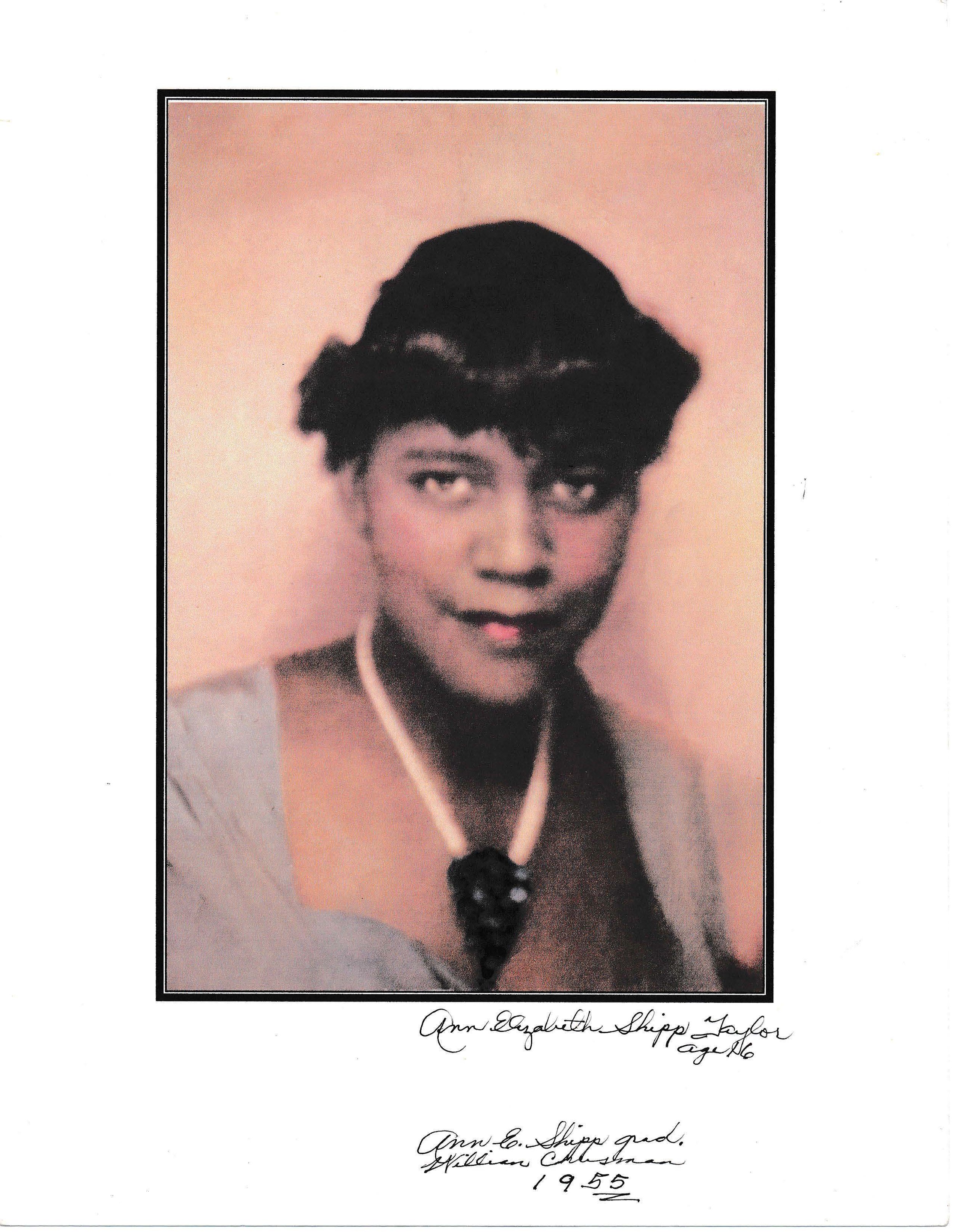 Ann Elizabeth Taylor was born December 31, 1937, in Independence to Pearl E. Pollard Shipp and Malachi Shipp. After her father died in 1942 when she was five, Ann and her mother lived with Aunt Abbie Pollard Taylor and Uncle Arthur Taylor at 214 East Truman Road. Ann is a cousin of Alversia Pettigrew, as they share a grandfather, Barry Copperidge.